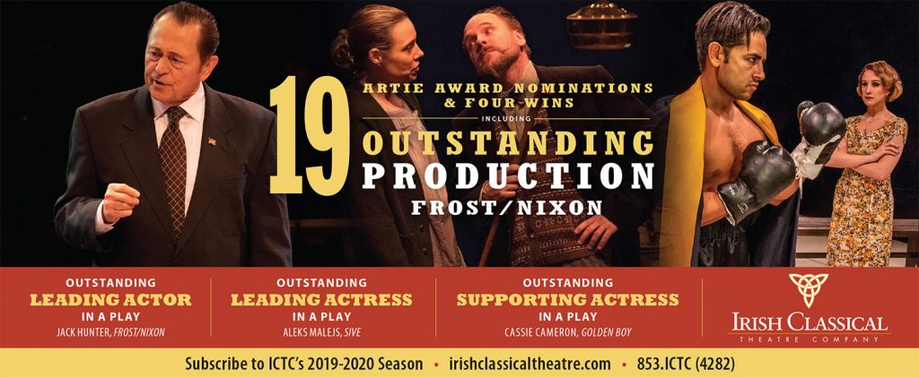The Irish Classical Theatre Company, fresh from a stellar awards season filled with recognition and accolades from audiences and critics alike, today announced its 2019-2020 Season. This balanced blend of plays is certain to enlighten, enrich and entertain. They have been thoughtfully selected and will be beautifully directed, designed, and performed at the level of artistic excellence that ICTC patrons have come to expect.