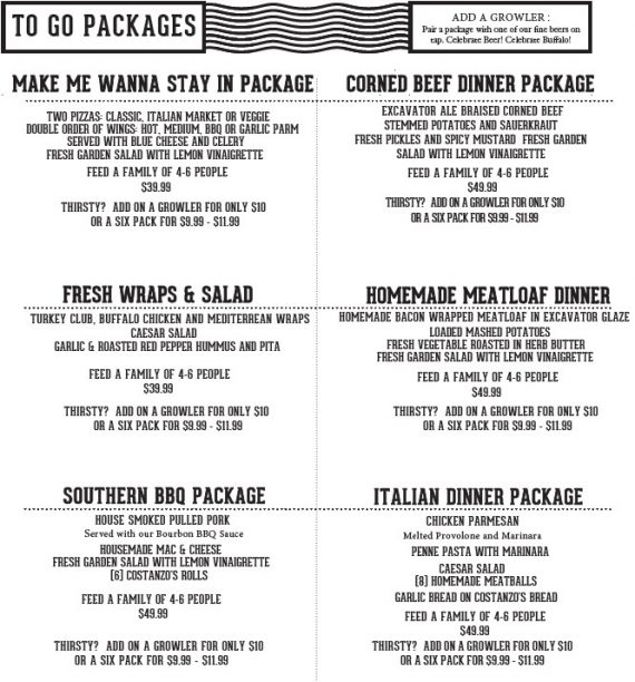 $39.99 – $49.99 to feed a family of 4-6 people with several options to choose from. Add on a growler fill for only $10 extra (glass included, signatures and seasonals only, pickup only.)
