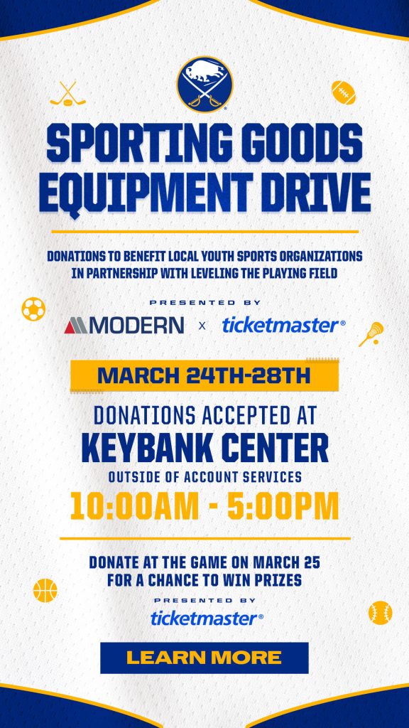 KeyBank Center is hosting a Sporting Goods Equipment Drive from Monday, March 24th to Friday, March 28th from 10am to 5pm!
