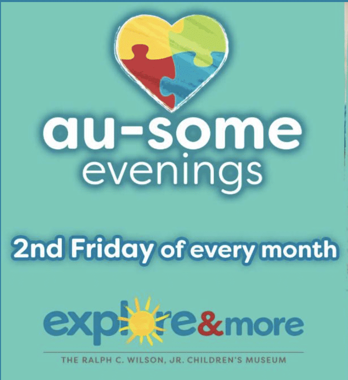 Friday, April 8th at 5:30pm, join Explore & More – The Ralph C. Wilson, Jr. Children’s Museum and Fisher Price for an Au-some Evening. This free event gives children with autism spectrum disorder and sensory processing disorder and their families an opportunity to play and learn together in an understanding and supportive environment. Families will have access to the museum space, play zones, and café. Featured activities include a music center, therapy dogs, art projects, and gross motor activities. For more information, or to register, click here.