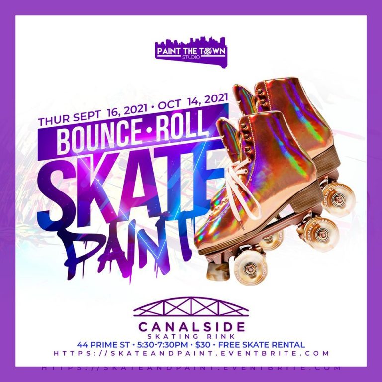 Thursday, October 14th, from 5:30pm to 7:30pm, join Canalside Roller Rink for the first season of Bounce Roll Paint and Skate by Paint the Town Studio! Purchase your ticket/s today for an evening of both roller skating and painting; the best of both worlds. Grab a bite from the Snack Shack and jump in on the fun! Admission starts at $30. For more information, or to purchase tickets, click here.