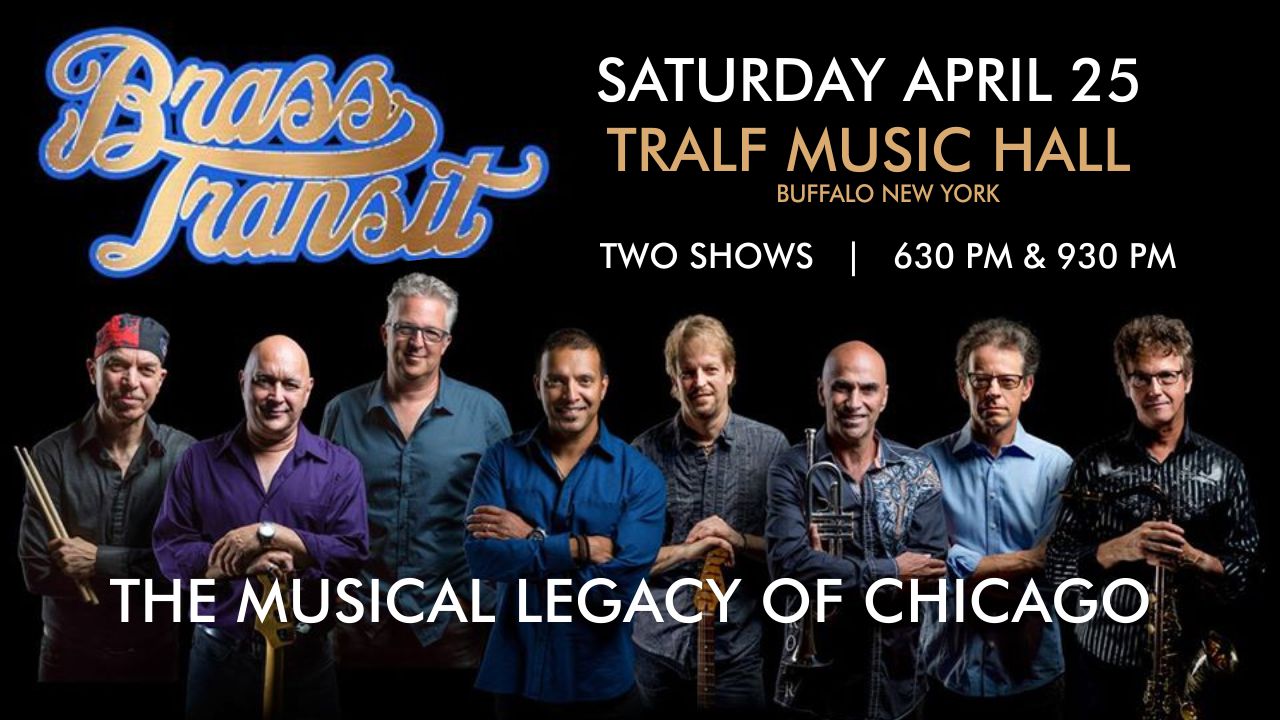 Saturday, April 25th, join the Tralf Music Hall for Brass Transit: The Musical Legacy of Chicago! Brass Transit celebrate the musical legacy of Chicago. The Brass Transit show includes all the hits from Chicago’s golden age. With a worldclass horn section, a rocking rhythm section and vocals stacked sky high. Brass Transit transports its audience back to the freewheeling days of the seventies. Performing live on the legendary Tralf Music Hall stage for two shows. 630pm and 930pm.