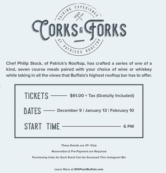 500 Pearl just announced their Dinner Series at Patrick’s Rooftop, Corks & Forks!