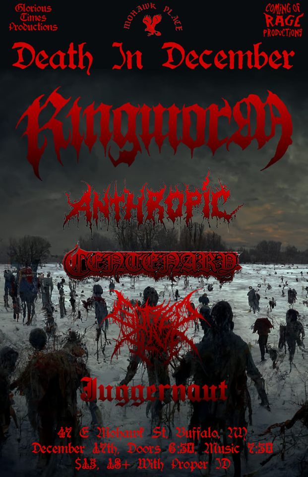 The evening will feature Ringworm, Centenary, Gutted Alive, Anthropie, and Juggernaut.