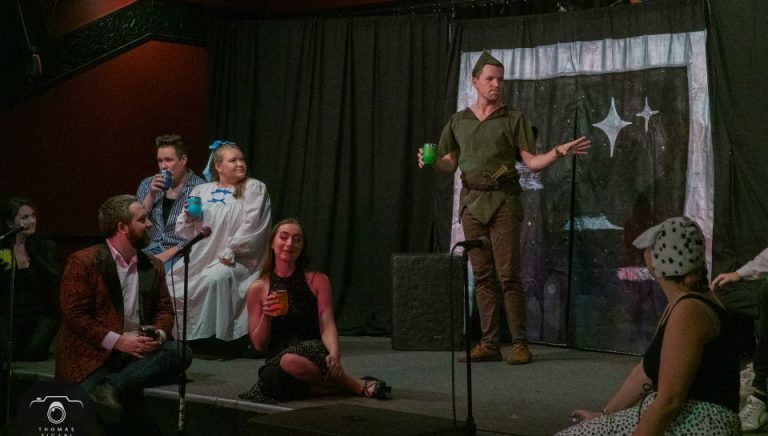 Drunk Peter Pan, directed by Emma English, written by Matthew Rittler, and produced by Emily Glick follows the original 1911 story Peter and Wendy by J.M. Barrie…almost. Audiences can expect to see their favorite characters Peter Pan, Wendy, Captain Hook, and Tinkerbell (among others) with some new additions to usher the story into 2023. This show is for an audience that had no choice but to grow up, but still feels young at heart.