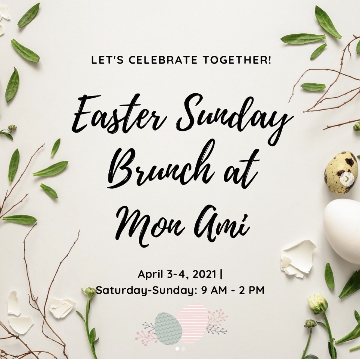 Enjoy Easter Brunch at Mon Ami! They will be offering an exclusive Easter menu of French-American inspired flavors, house made desserts, and signature mimosas!