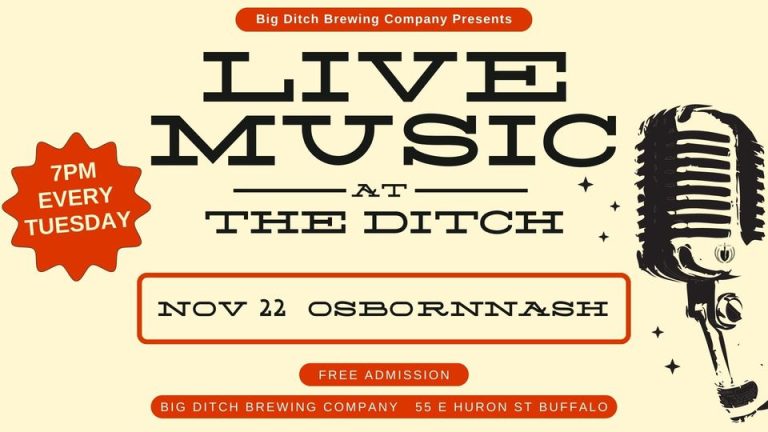 Tuesday, November 22nd enjoy Live Music at The Ditch with OsbornNash. The show starts at 7pm. For more information, click here.