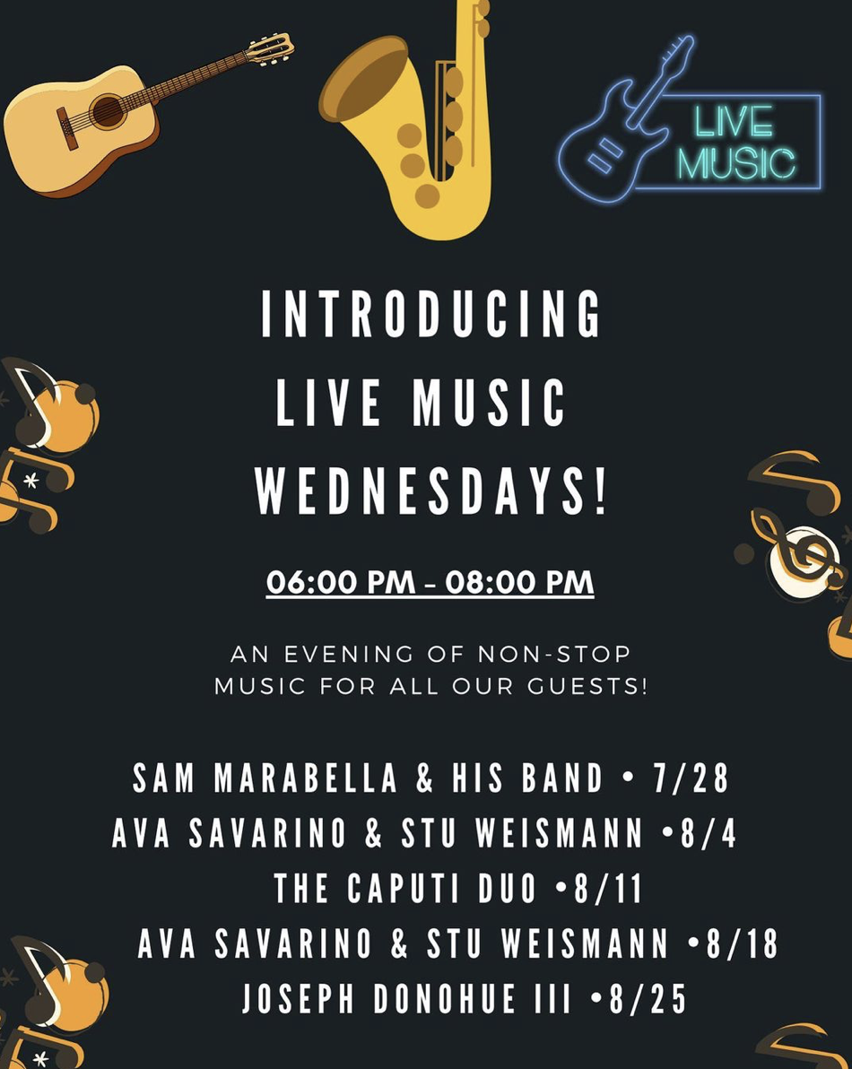 Join Mon Ami on Wednesday, July 28th for Live Music Wednesday’s featuring Sam Marabella & His Band! This event begins at 6pm.