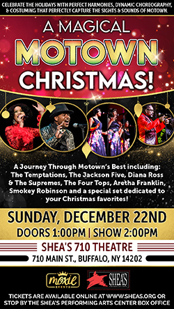 Experience a Journey Through Motown’s Best including: The Temptations, The Jackson Five, Diana Ross & The Supremes, The Four Tops, Aretha Franklin, Smokey Robinson, and a special set dedicated to Christmas favorites at Shea’s 710 Theatre on Sunday, December 22nd!