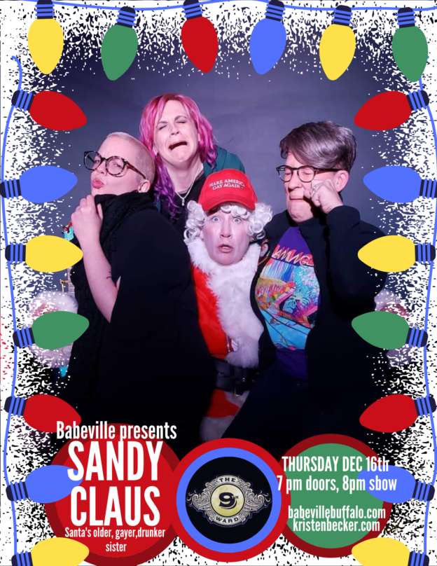 Wednesday, December 22nd at 8pm, join The 9th Ward at Babeville for Sandy Claus: Out of the Claus-et. This comedy show featuring Kristen Becker and Katie Fitzgerald is a holiday romp that is sure to bring Buffalo together for a good laugh. Doors open at 6:30pm and tickets are $15 in advance and $20 the day of. This is an 18+ show. For more information, or to purchase tickets, click here.