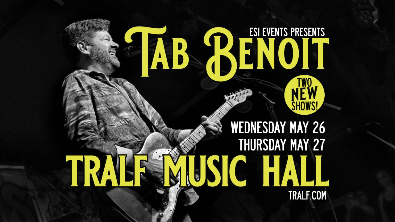 Wednesday, May 26th and Thursday, May 27th, join the Tralf Music Hall for Tab Benoit with Alistair Green! Doors will open at 7pm and admission starts at $34.