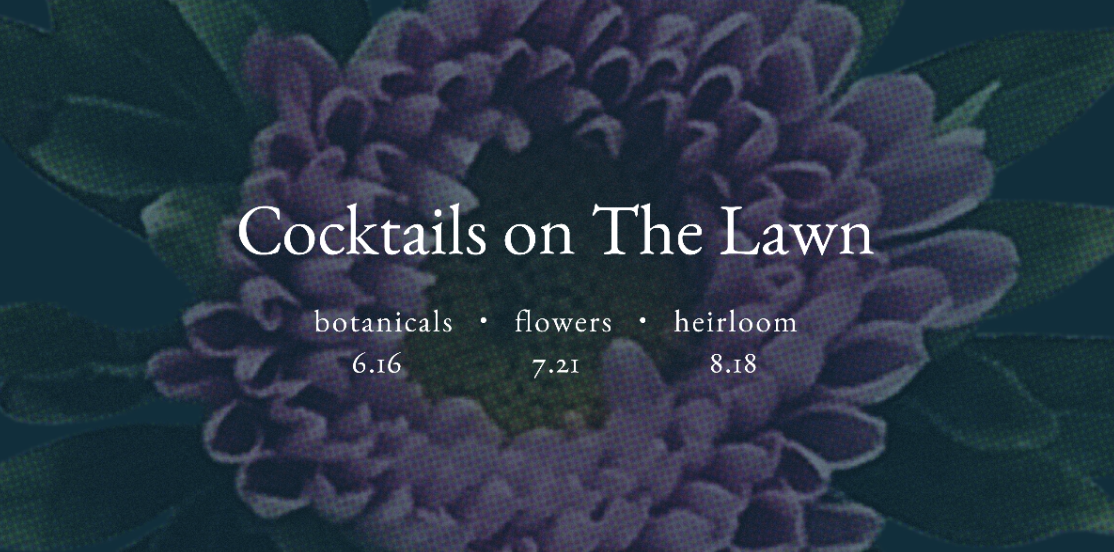Each event’s food and drink menu will feature seasonal ingredients inspired by the evening’s theme of botanicals, flowers, or heirloom: