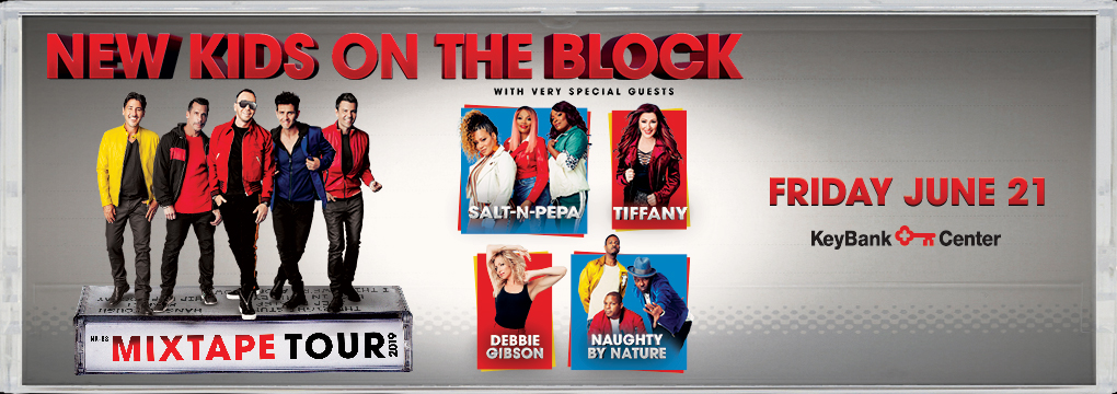 Friday, June 21st, join KeyBank Center for The Mixtape Tour at 8p featuring New Kids on the Block, Salt-N-Pepa, Tiffany, Debbie Gibson and Naughty Nature.