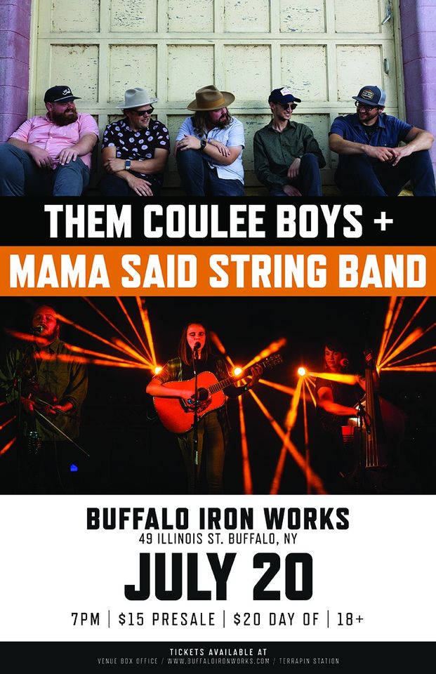 Wednesday, July 20th, Them Coulee Boys and Mama Said String Band perform at at Buffalo Iron Works. The show starts at 7pm and tickets begin at $15. For more information and tickets, click here.