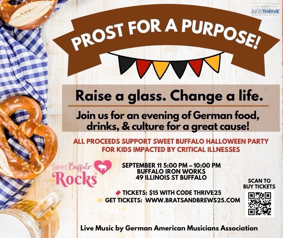 Thrive in 25: A Night of Brats, Brews, and Giving Back is an inspiring community event with an Oktoberfest twist! Taking place at Buffalo Iron Works on Thursday, September 11th, this event is open to anyone who wants to support the community, meet new people, and connect with local businesses and non-profits — all while enjoying great food, drinks, and entertainment for a meaningful cause.