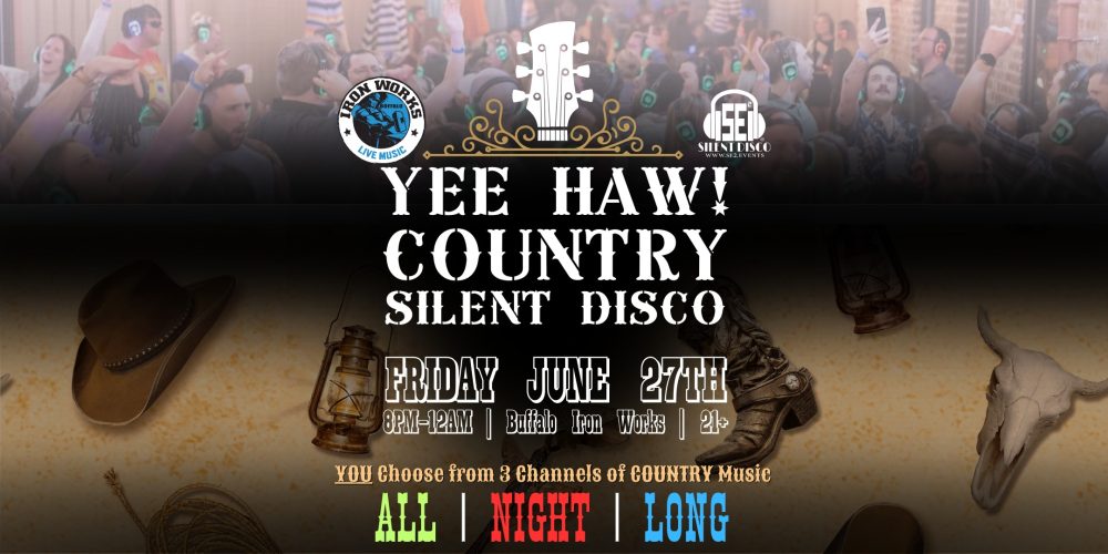 This exciting event promises to bring together country music fans in a unique and immersive experience at Buffalo Iron Works on Friday, June 27th! Choose from three channels of country music, including current top country hits, classic country favorites, line dancing anthems and everything in between! The event will also feature a professional lighting production and custom UV decorations, creating a vibrant and energetic atmosphere.