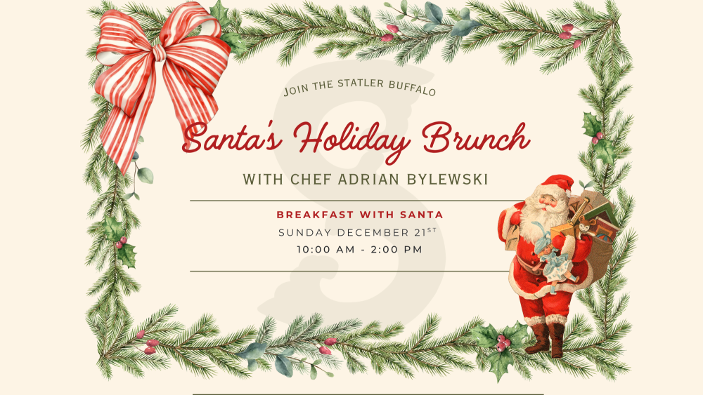 Join Santa at The Statler for brunch on Sunday, December 21st! Gather your loved ones, share a meal, and make memories beneath the tree. Click here for full details.
