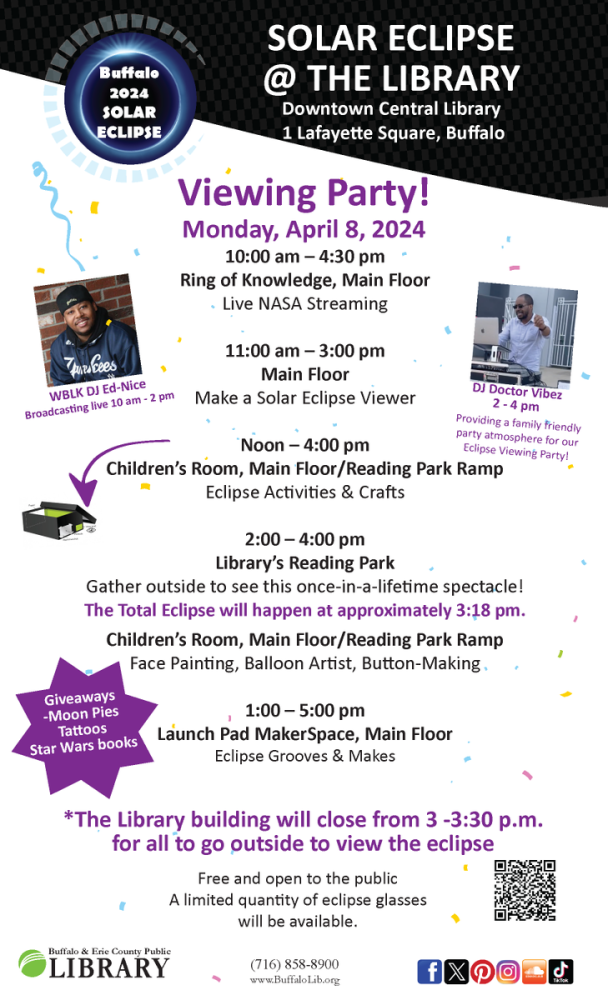 View the 2024 Eclipse at the Downtown Central Library! Celebrate with all ages activities and programs including NASA live streaming of the event in the library’s Ring of Knowledge, crafts […]