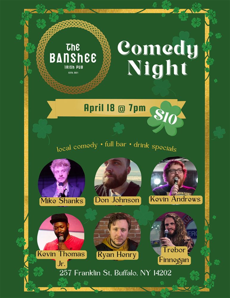 Check out Comedy Night at The Banshee on Thursday, April 18th! Enjoy local comedy, a full bar, and drink specials. Click here for full details.