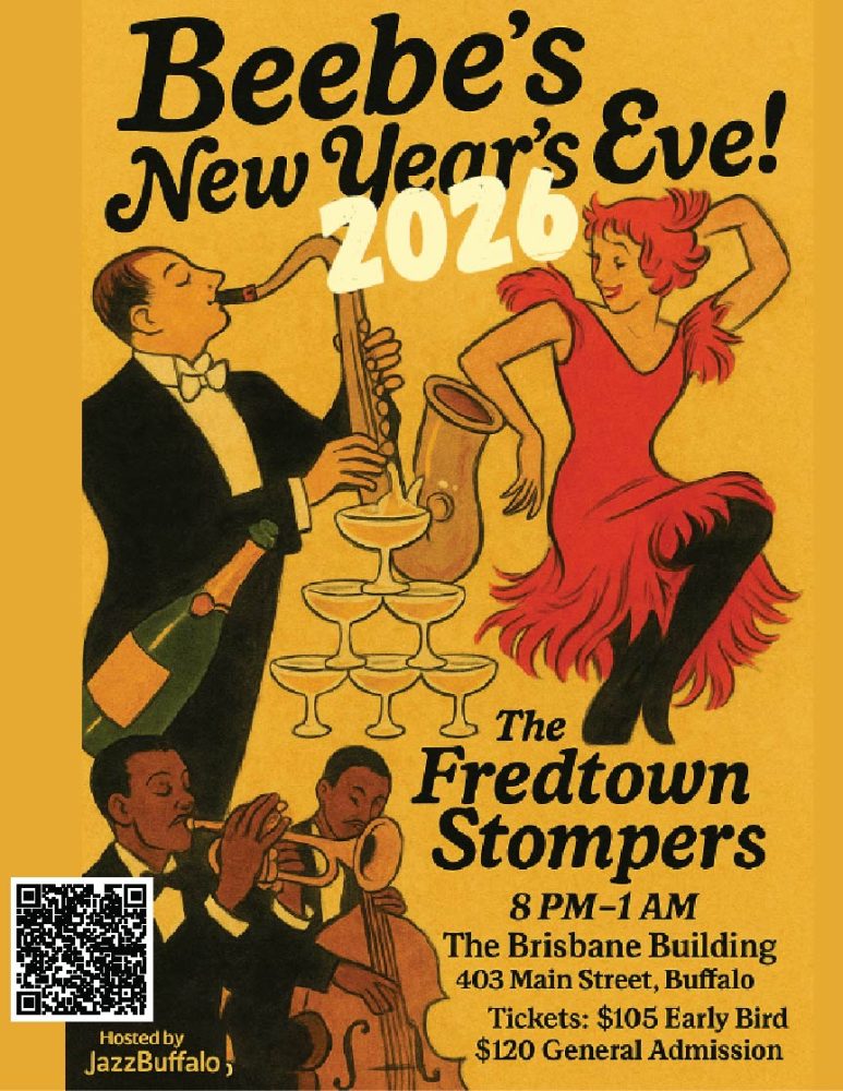 JazzBuffalo, Beebe’s at the Gallery, and the Brisbane Building invite you to ring in 2026 in classic speakeasy style! This year, they’re turning up the charm with an enhanced speakeasy theme and live music by The Fredtown Stompers, one of Buffalo’s favorite traditional swing and New Orleans-style jazz bands. Put on your dancing shoes and […] |