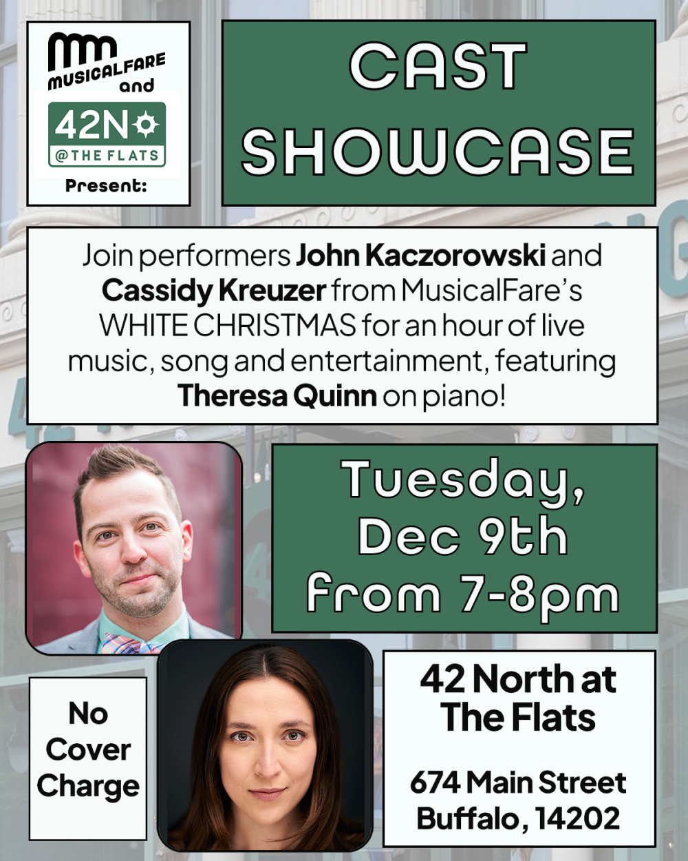 Join performers John Kaczorowski and Cassidy Kreuzer from White Christmas, MusicalFare’s December production at Shea’s 710 Theatre, for an hour of live music, song and entertainment featuring Theresa Quinn on the piano. The event is FREE (no cover charge) and takes place from 7pm to 8pm on Tuesday, December 9th at 42 North at The […]