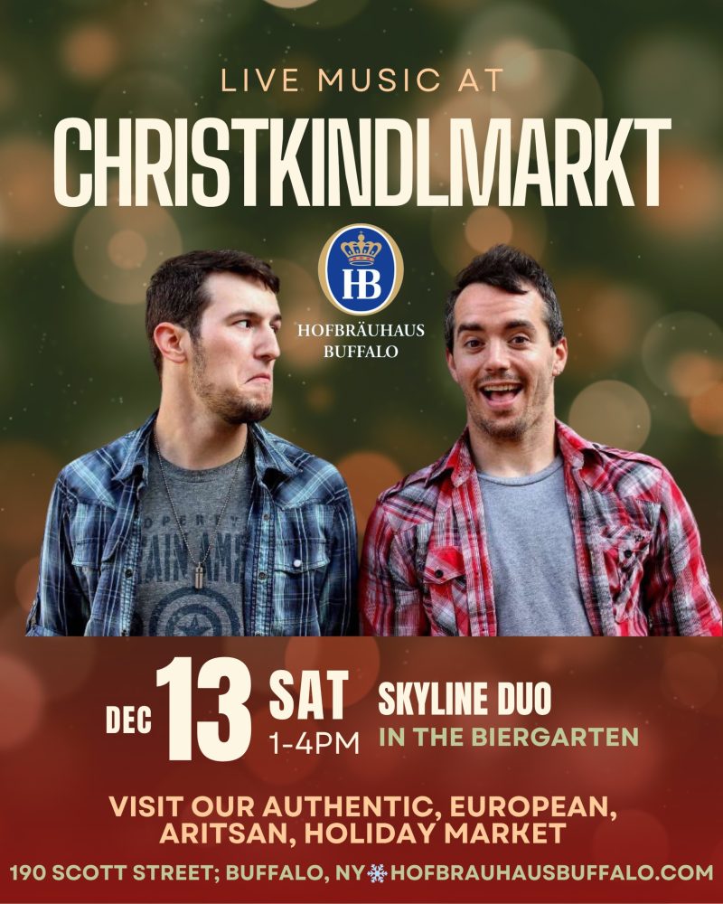 Join at Hofbräuhaus for a special afternoon with Skyline Duo, who’ll be treating the crowd to a rich mix of their classic favorites and beloved holiday hits. Picture yourself wandering the glowing vendor huts of the Christkindlmarkt, a spiced Glühwein in hand, lights twinkling overhead, and friends all around. As the music fills the air, […]