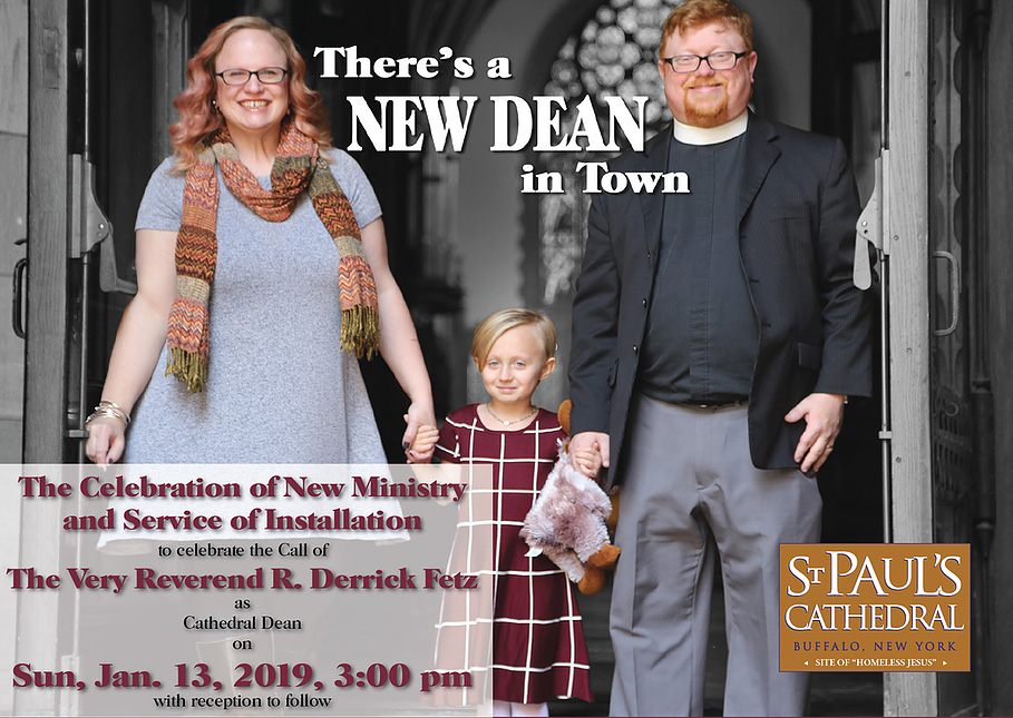 Sunday, January 13th, join the Episcopal Diocese of Western New York and St. Paul's Cathedral for the Celebration of New Ministry and Service Installation of the Very Reverend R. Derrick Fetz as Cathedral Dean. The service installation with reception to follow will take place at St. Paul's Episcopal Cathedral at 3p. RSVP to teresa@spcbuffa.org.