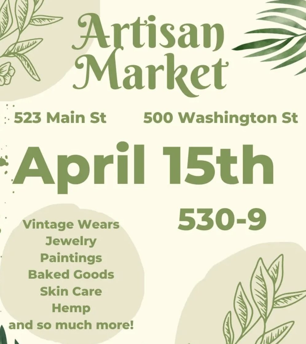 Friday, April 15th at 5:30pm, there will be an Artisan Market at 523 Main Street with everything from arts to eats. The pop up will feature curated vintage wares, apparel, beauty products, baked goods, and more!