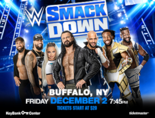 Friday, December 2nd KeyBank Center hosts WWE Friday Night SmackDown. The event starts at 7:45pm. For more information and tickets, click here.