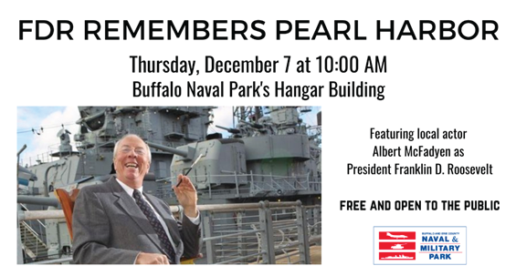 On Thursday, December 7th, at 10am, local actor Albert McFadyen will reprise his role as Franklin Delano Roosevelt during a special program at the Buffalo Naval & Military Park on to commemorate the 82nd anniversary of the Japanese attacks on the U.S. naval base at Pearl Harbor, Hawaii. McFadyen will recreate Roosevelt’s “Day of Infamy” […]