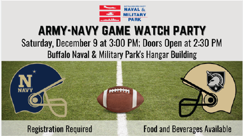 Join the Buffalo and Erie County Naval & Military Park on Saturday, December 9th for the rivalry game of the year! The Army-Navy Football Game will be on the big screen inside the Hangar Building. Doors open at 2:30pm. There will be food, drinks, games, prizes, and giveaways! This event is open to the public […]