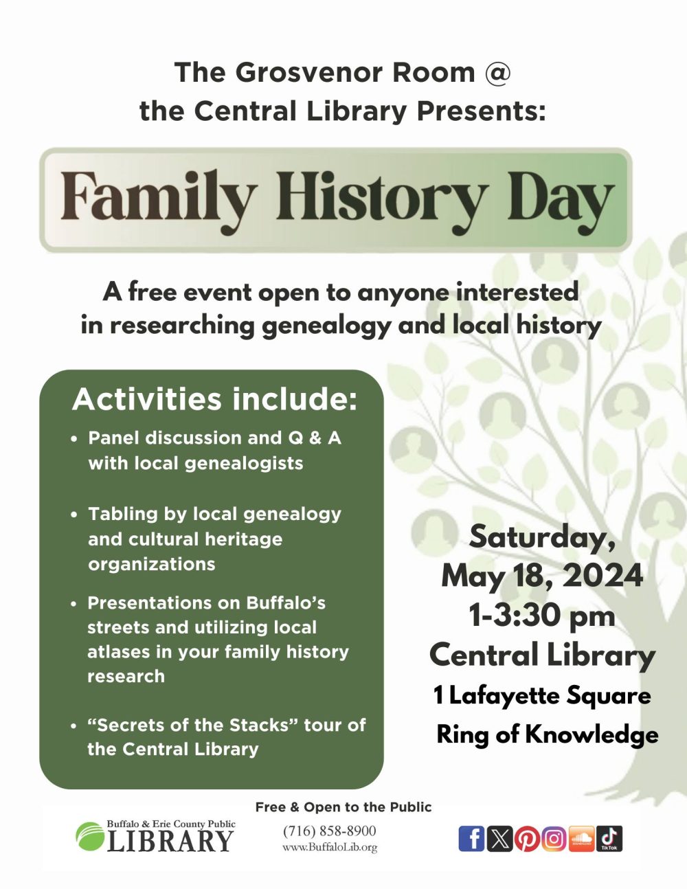 The Grosvenor Room, the Buffalo & Erie County Public Library’s Special Collections Department, is planning its 2nd annual Family History Day event on Saturday, May 18th at the Central Library! […]