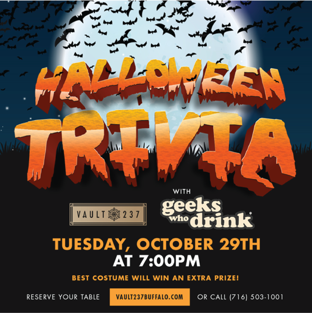Trick-Or-Treat yourself to Halloween Trivia at Vault @ 237 on Tuesday, October 29th and see how well you know this hauntingly good holiday! In addition to our Halloween Trivia, we'll be hosting a costume contest for those who love to dress up in spirit of the holiday. The best costume of the night will win […]